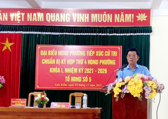 Thực hiện Kế hoạch số 10/KH-HĐND ngày 25/11/2025 của HĐND phường Lưu Kiếm về tổ chức tiếp xúc cử tri phục vụ kỳ họp thứ 4 – kỳ họp thường lệ cuối năm 2025 của HĐND phường khóa I, nhiệm kỳ 2021–2026; từ ngày 02/12/2025 đến ngày 05/12/2025, Ban Thường trực Ủy ban MTTQ Việt Nam phường Lưu Kiếm đã tổ chức tiếp xúc cử tri tại 07 Tổ đại biểu HĐND phường.