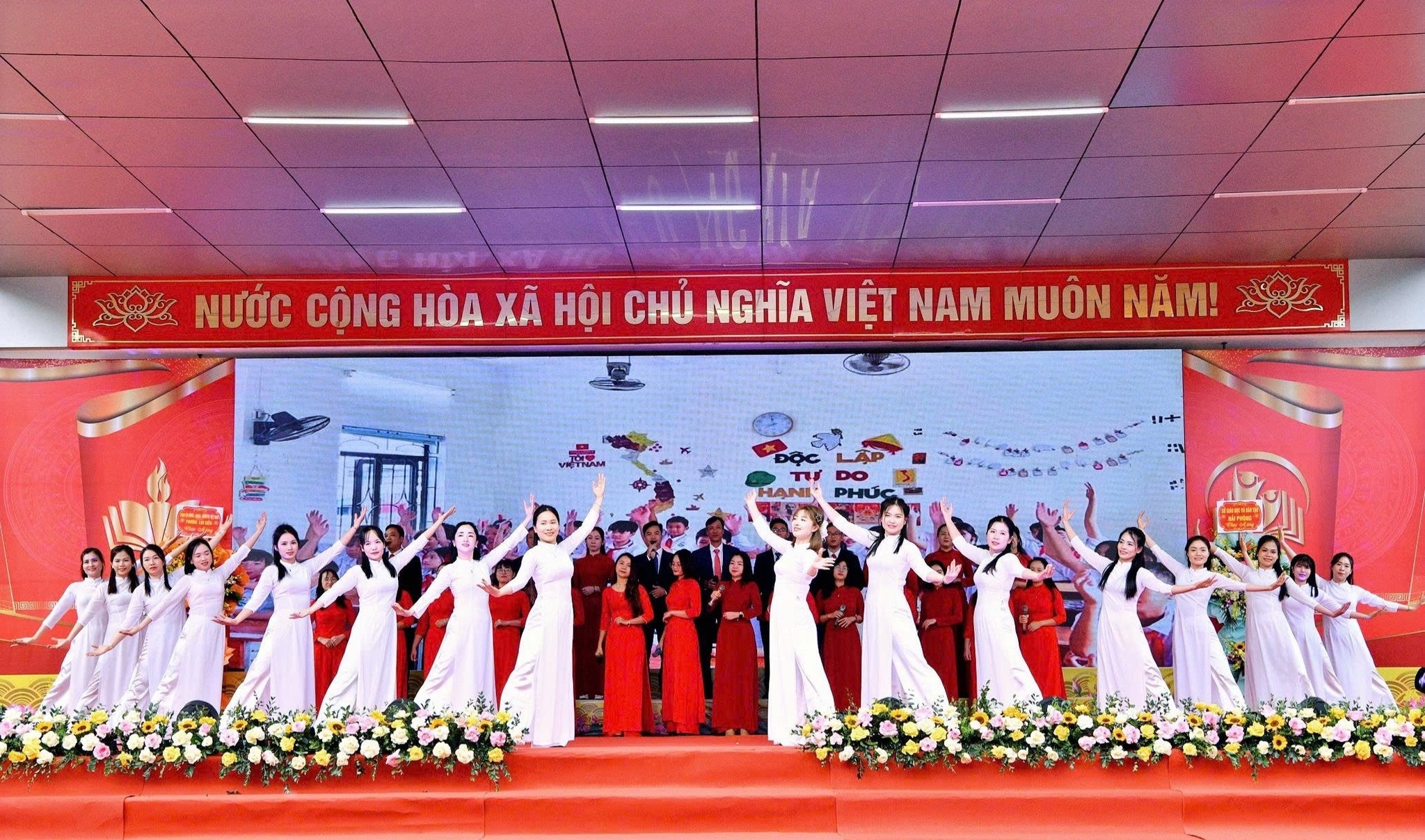Tham dự chương trình có đồng chí Uông Minh Long – Phó Giám đốc Sở GD&ĐT thành phố Hải Phòng; đồng chí Nguyễn Văn Tuấn – Bí thư Đảng ủy, Chủ tịch HĐND phường; đồng chí Nguyễn Huy Hoàng – Phó Bí thư Đảng ủy, Chủ tịch UBND phường; đồng chí Đào Thị Thúy Hằng – Phó Bí thư Thường trực Đảng ủy phường; đồng chí Lê Thị Lệ Thủy – Chủ tịch UB MTTQ Việt Nam phường; các đồng chí Phó Chủ tịch HĐND-UBND phường; Trưởng, Phó các ban Đảng-HĐND và các Phòng chuyên môn UBND phường, Công an phường; các thầy cô giáo qua các thời kỳ và đông đảo cán bộ, giáo viên, học sinh các trường học trên địa bàn.